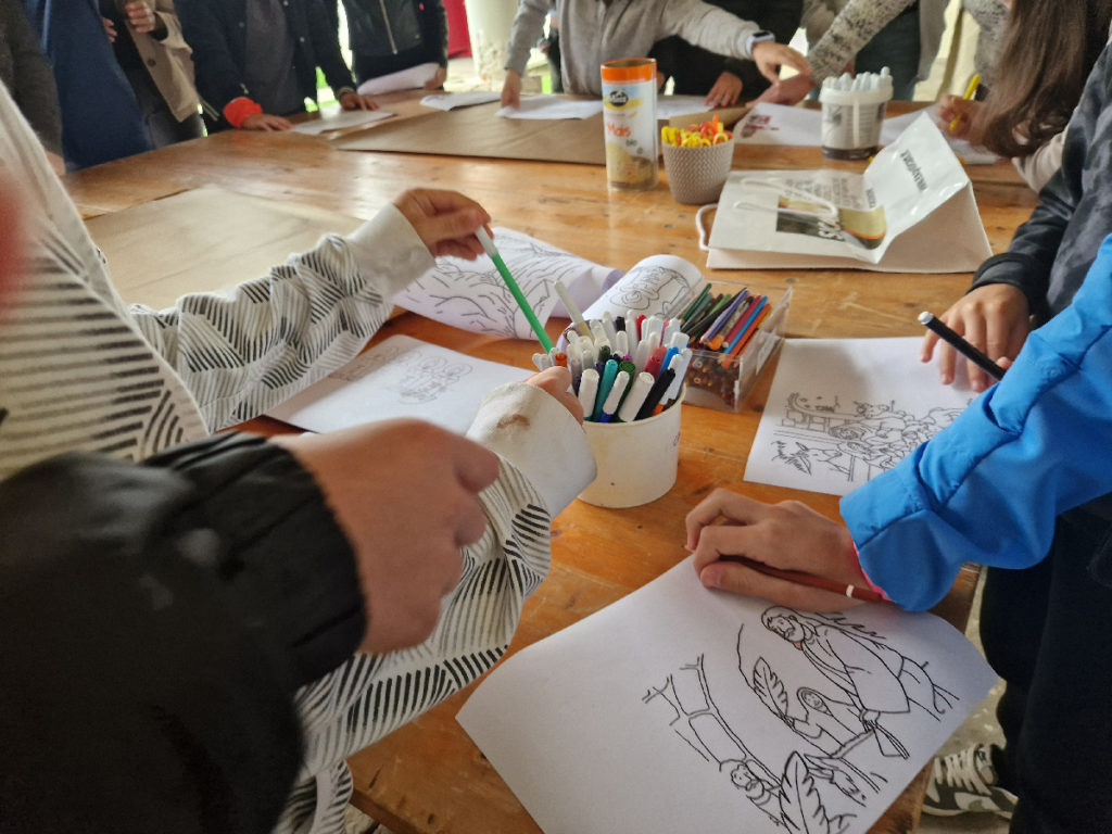 - I ragazzi delle medie, sono stati i pittori di due grandi cartelloni, e attraverso immagini e parole, hanno illustrato le tappe del loro percorso di fede, con il catechismo come cammino della vita.