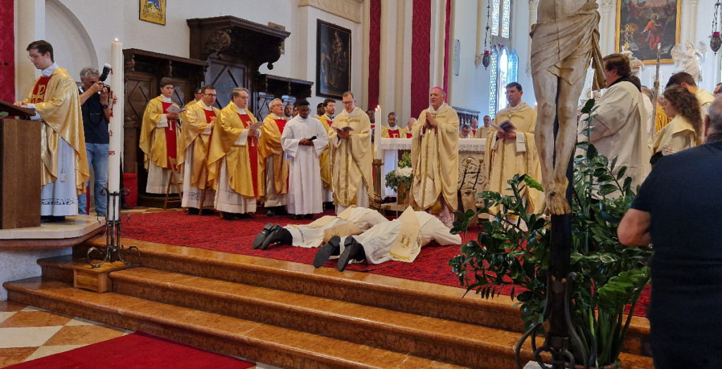Gesti che parlano di una scelta di vita, fatta di impegno personale ma anche di consegna nelle mani di Dio, come l’emissione delle promesse e la prostrazione a terra degli ordinandi mentre tutta l’assemblea invoca su loro la protezione e l’aiuto dei santi.